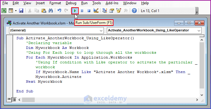 Activate vba excel worksheet sheet navigate worksheets macros using teachexcelActivate another workbook with vba in excel: 6 examples Download vba worksheet activateVba activate sheet.